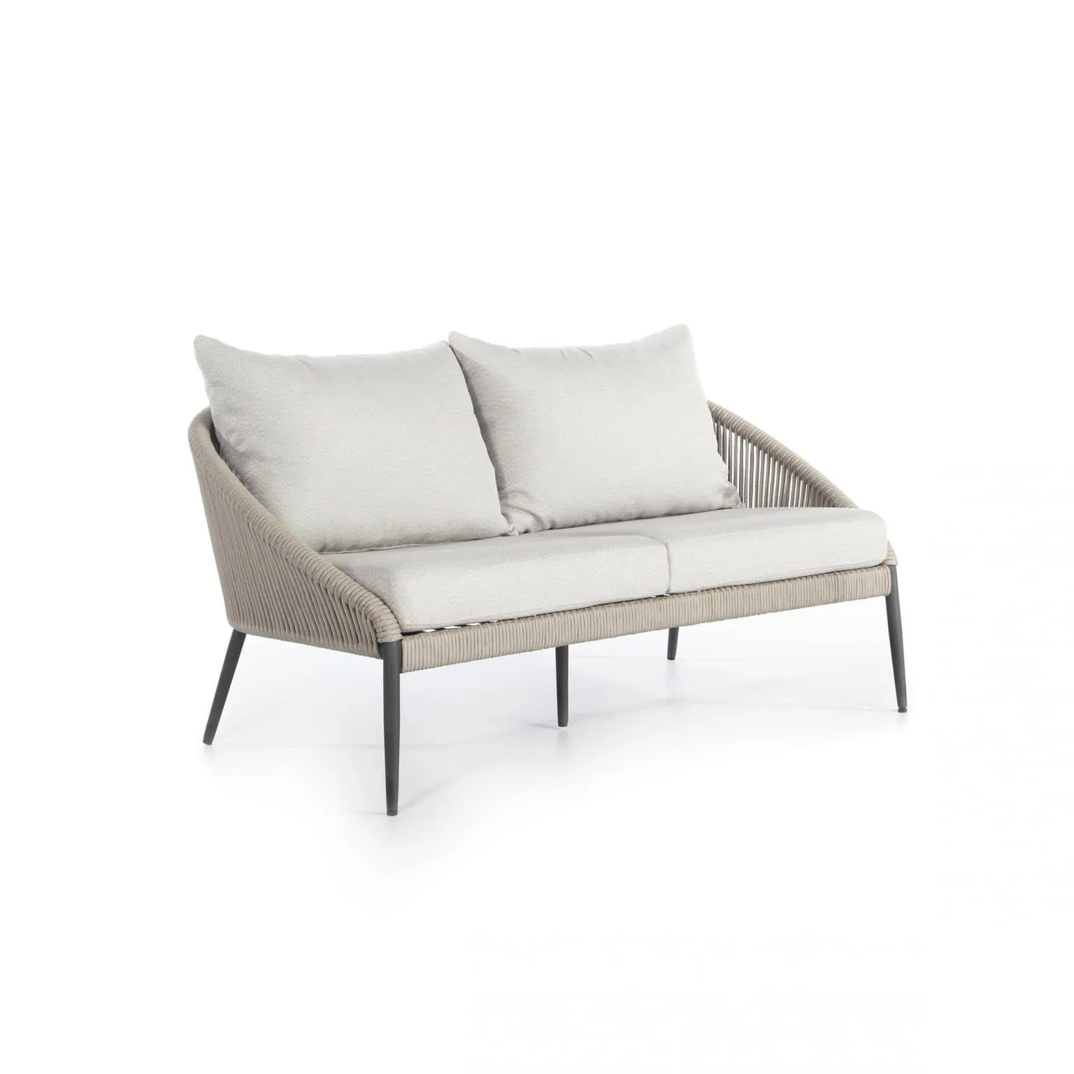 Loveseat with natural teak structure and 20mm braided banana fiber.