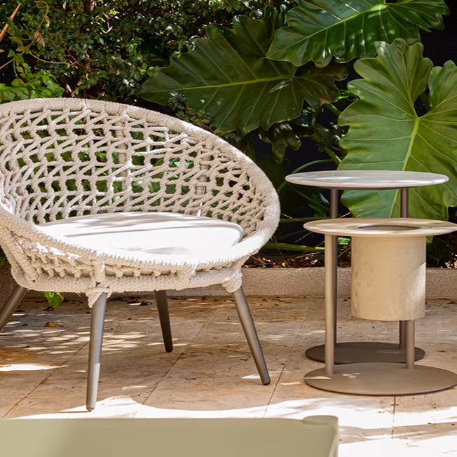 Amsterdam side table made by Green House Móveis. Aluminum frame with electrostatic paint finish. Top available in stone or wood.