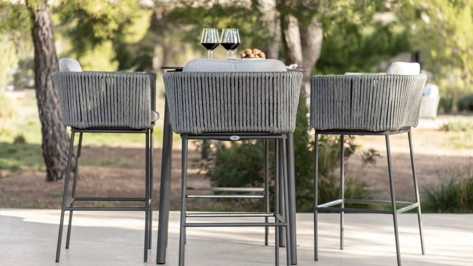 Elevate your outdoor bar area with the BOSTON Barstool. Crafted with polyester fiber and topped with cozy Dyed Acrylic cushions, this barstool offers comfort and style for entertaining friends and family. Sip drinks in style and comfort.