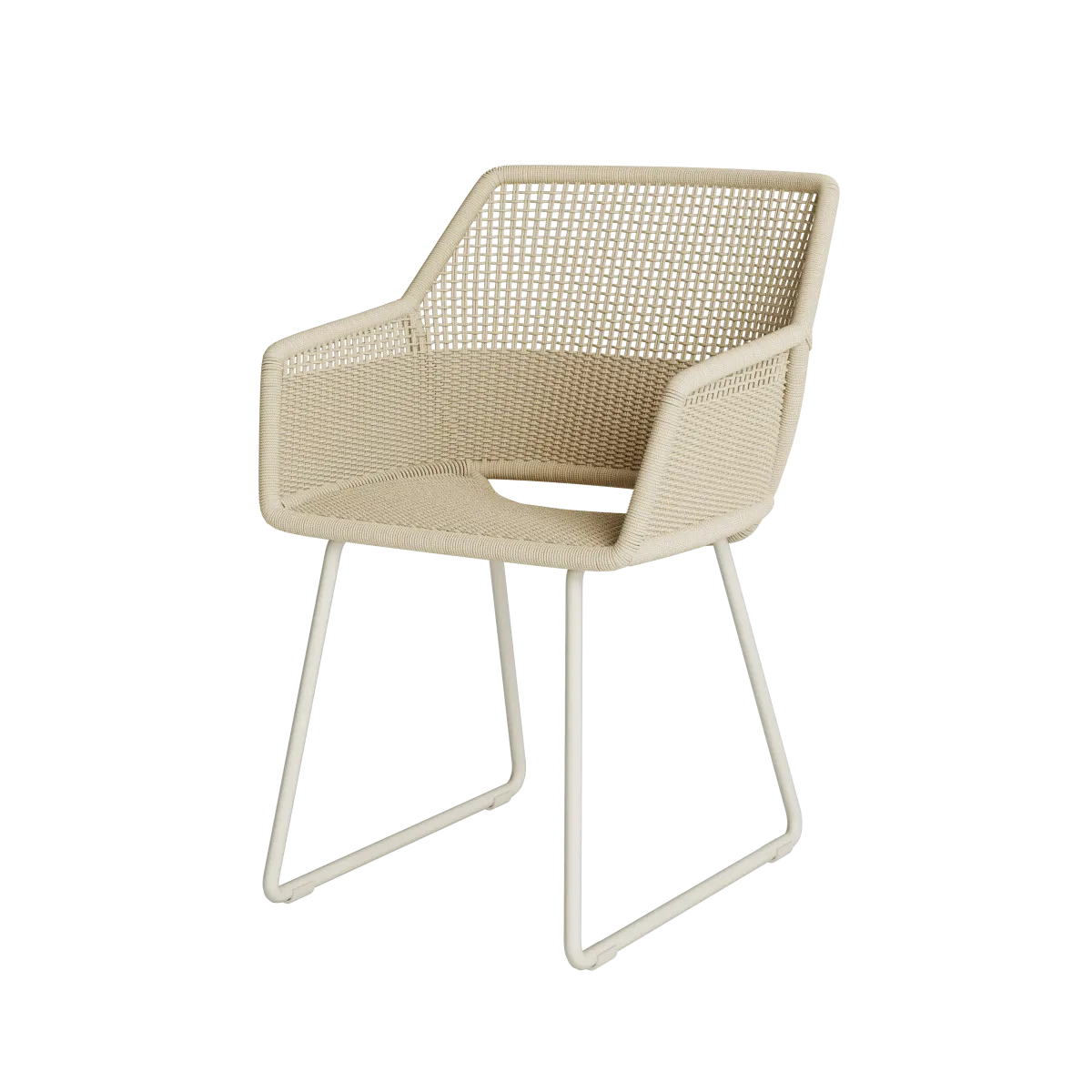 Crafted to elevate your dining and lounging experiences, this collection comprises a dining chair, lounge chair and complementary footstool. This meticulous weaving not only adds a touch of artisanal charm but also provides a comfortable and supportive seating experience. The almond-coloured rope is elegantly framed by a powder-coated aluminum structure in a matching shade. The addition of the footstool completes the ensemble, offering an extra layer of comfort for those seeking a truly indulgent experience.