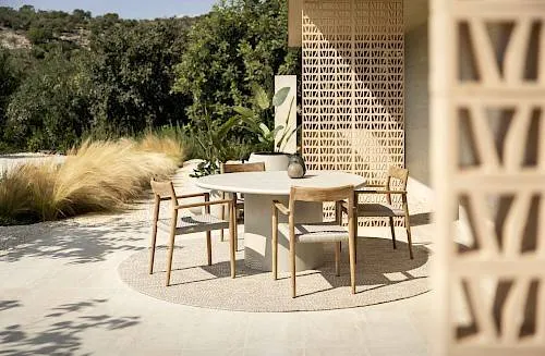 Designed with a keen eye for fluidity, this collection showcases graceful lines and embraces the beauty of organic, rounded forms. Crafted from a unique blend of lime and concrete, each item is meticulously hand-applied with a spatula, resulting in a distinctive texture that marries the ruggedness of concrete with the smoothness of silk. The material not only exudes a luxurious and silky texture but also boasts exceptional water repellency and waterproof properties, ensuring durability against all weather conditions.