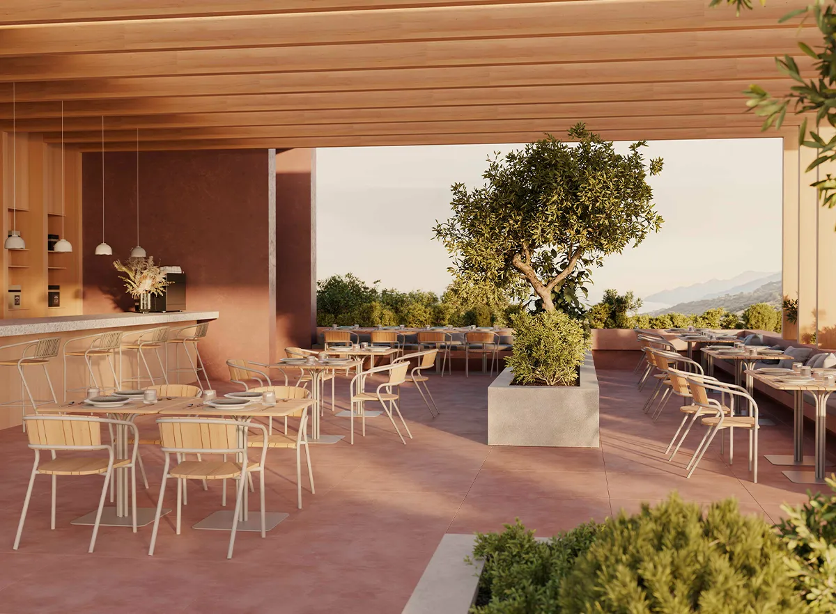 It combines a solid aluminum structure with teak wood details, creating a perfect balance between strength, warmth and visual lightness.