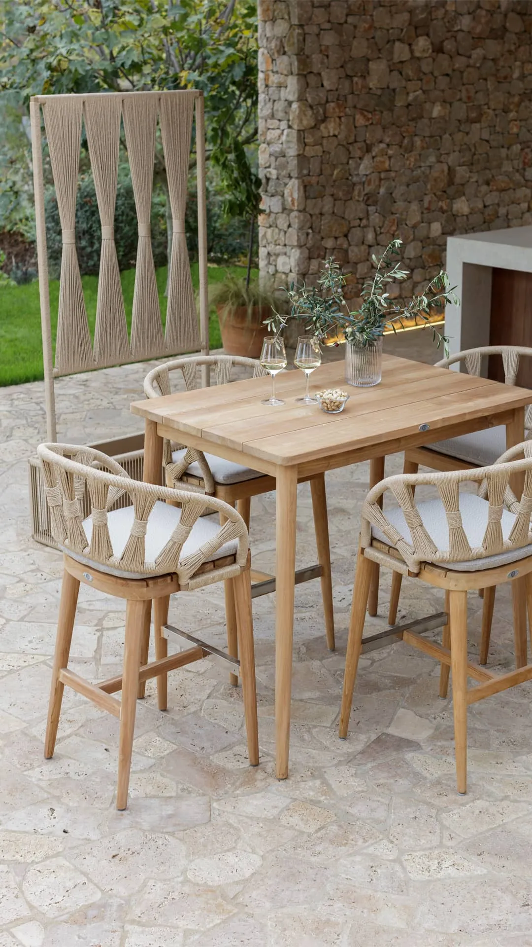 Complete your outdoor bar or counter with our stylish KRABI Barstool. Crafted with natural teak wood, it offers both comfort and elegance. Enjoy outdoor drinks in style with this chic addition.