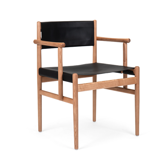 The leaf chair is a contemporary design piece characterized by the combination of raw materials: wood and leather. The chair has a solid wood structure that supports the suspended seat and artistic back.