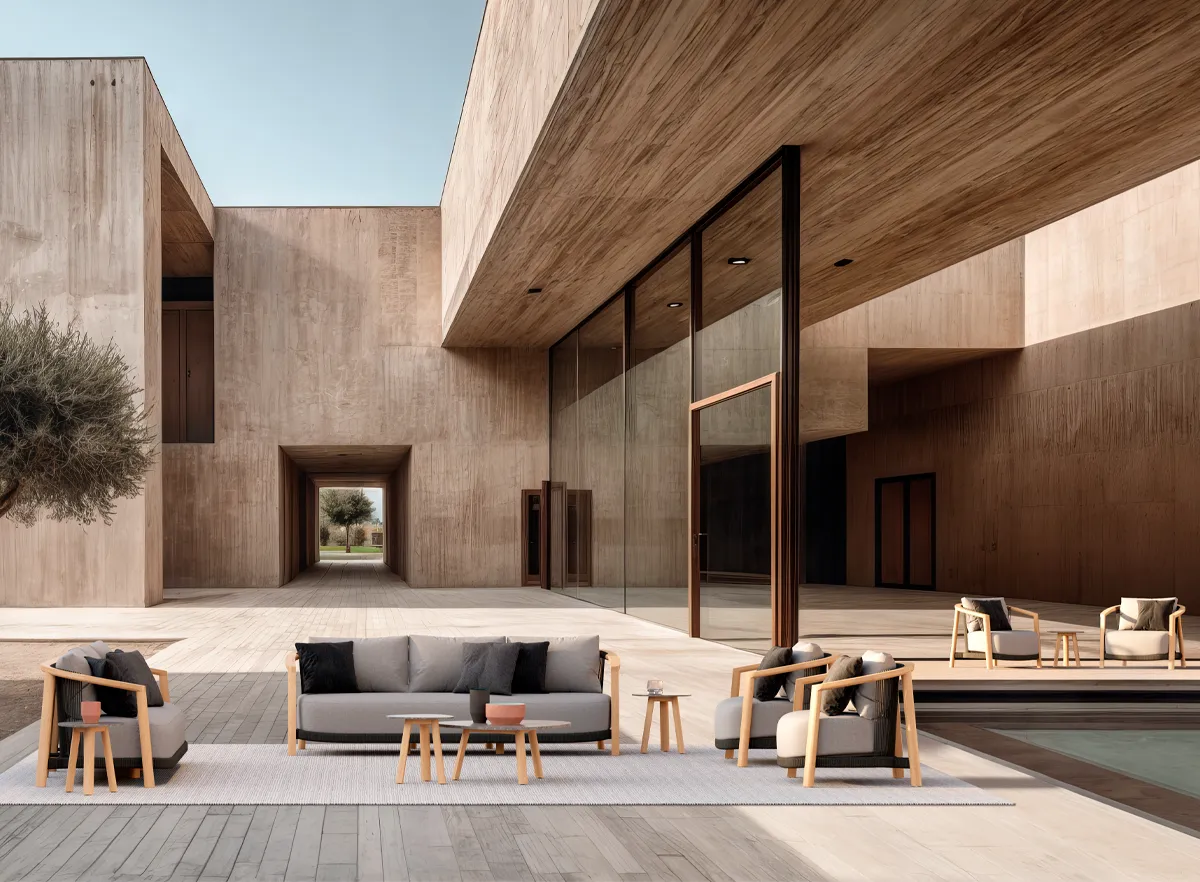 Side table that combines the naturalness of teak with a VK03 dekton top, which adds elegance to the piece.
