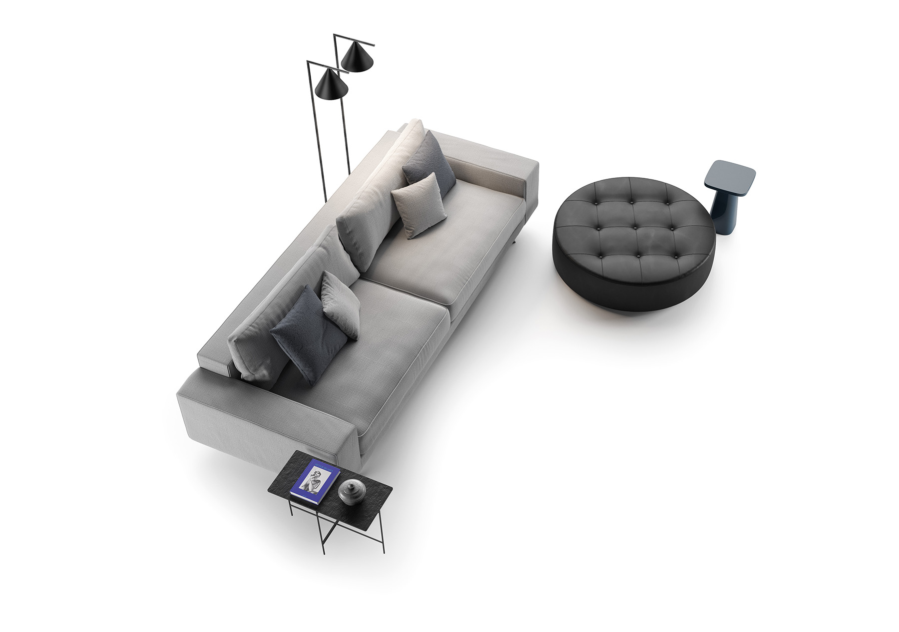 Small cushions in Baltimore fabric color 35 / Gravel and Barnum color 16/ Blue