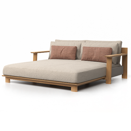 It stands out for its enveloping design and its balance between strength and elegance. Its natural teak structure, robust and durable, is intertwined with the delicacy of the 6mm braided rope in Taupe tone.