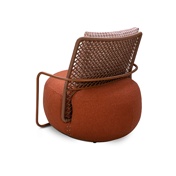 Starting from just two basic elements—a large pouf and a backrest—the BAEZA armchair captures in its minimalist lines the very essence of sitting. Like a blade cutting through the seat, the backrest, woven in nautical rope, brings vitality and the strength of a single detail. The entire piece is framed by a subtle, almost imperceptible armrest that crosses the design like a line, a stroke that begins a sketch.