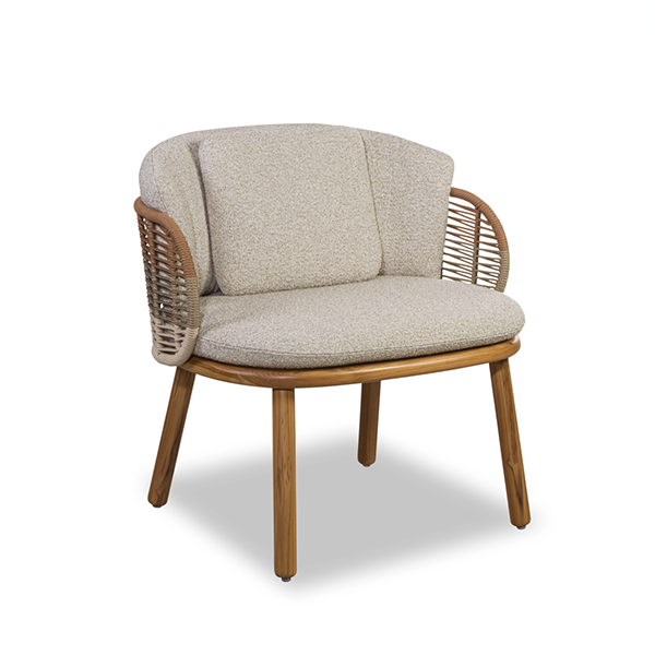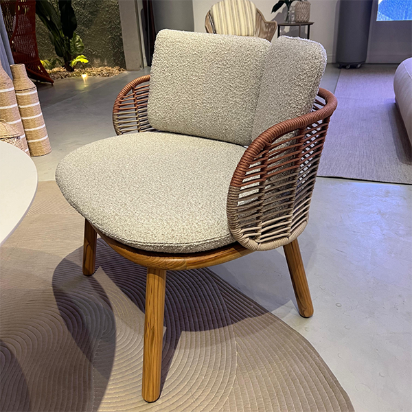 The curved lines evoke softness and fluidity, while the concept of intermezzo suggests that these pieces occupy an in-between space — a comfortable transition between rest and outdoor contemplation. The name can also be associated with the use of the chairs and armchairs as elements that provide a break in the everyday rhythm, a moment of rest within the outdoor environment.