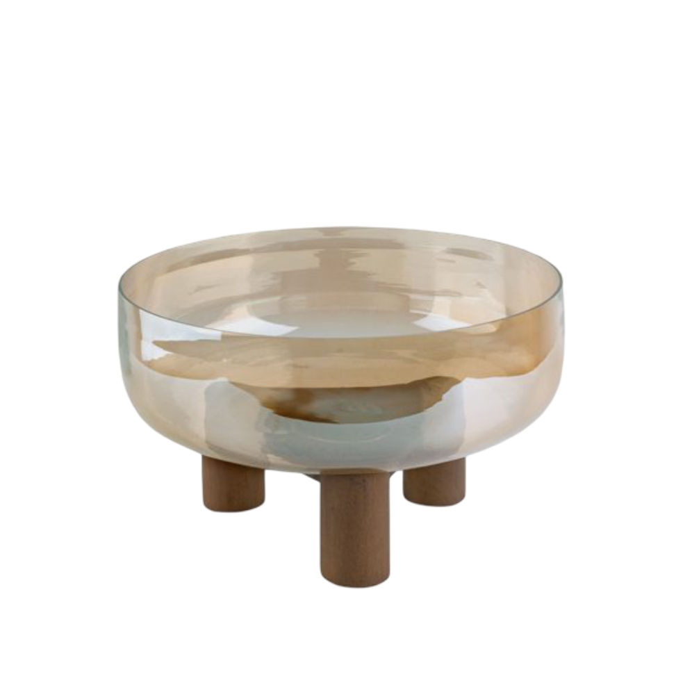 It combines the warmth of mango wood with the elegance of glass, creating a cozy and sophisticated atmosphere. Perfect for lighting up any space with a natural and refined style. Ideal for both modern and classic interiors.