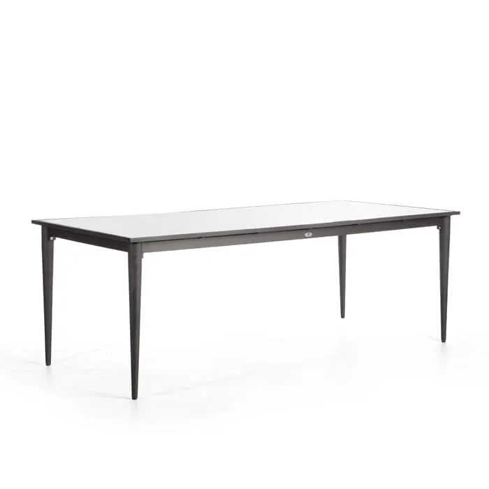 Elevate your outdoor dining experience with the SERPENT Dining Table. The durable aluminum frame perfectly complements your choice of a stunning glass or a durable porcelain top.