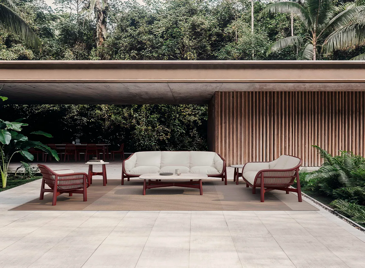 Serra reinterprets tradition with a modern approach. It combines a handcrafted polyrod braiding with a tapered aluminum structure, resulting in pieces that balance nostalgia and modernity.