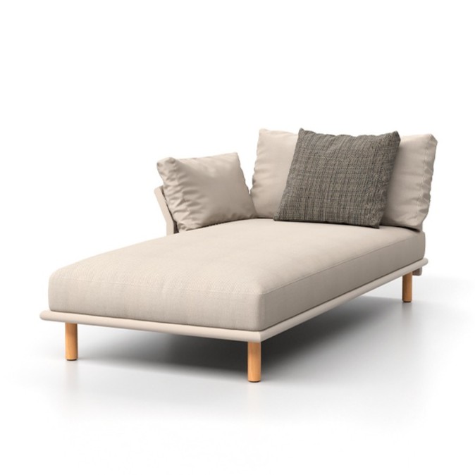 Chaise-Longue right, made of aluminum in a refined white wash tone, and Atmospher flat rope 16x5mm perfectly blends durability and elegance. With a spacious and ergonomic design that invites you to relax with your loved ones.